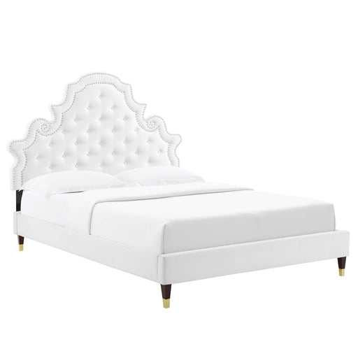 ModwayGwyneth Tufted Performance Velvet Platform Bed With Gold Metal Legs