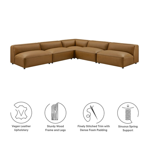 Auren 5-Piece Upholstered Armless L-Shaped Vegan Leather Modular Sofa
