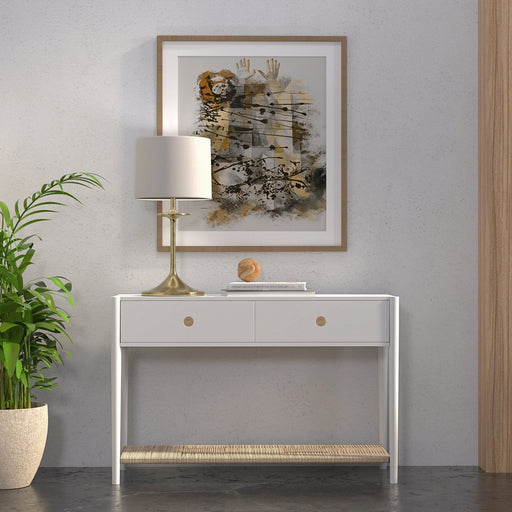 Add timeless elegance to your entryway or living space with the Cleo Console Table. Featuring a woven bottom shelf for added texture and storage, t...