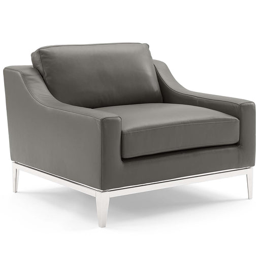 View full detailsHarness Stainless Steel Base Leather Loveseat & Armchair Set