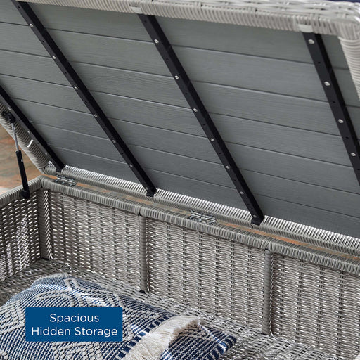 Enjoy fresh air and alfresco relaxation with the Conway Outdoor Patio Wicker Rattan Ottoman. Wrapped in UV-resistant light gray synthetic wicker ra...