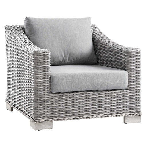 Enjoy fresh air and alfresco relaxation with the Conway Outdoor Patio Wicker Rattan Armchair. Wrapped in UV-resistant light gray synthetic wicker r...