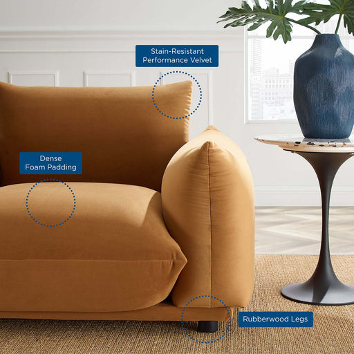 Sink into pillowy plush comfort with the Copious Performance Velvet Armchair. Featuring an overstuffed design, this accent chair offers premium com...