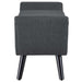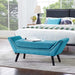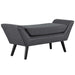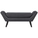 Roll out the charm with Gambol. Finely upholstered in polyester fabric and densely padded with just the right amount of give, Gambol is a comfortable bench supported by black finish dowel wood legs and non-marking foot caps. Decorated with polished silver accent nailhead trim, update your home today with a solidly made bench that complements any modern décor.