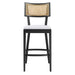 The Caledonia Set of Two Bar Stools blends classic design features with contemporary comfort. Each bar-height stool is constructed with a robust elm wood frame and has a seat made from strong plywood. The gently curved rattan backrest gives a nod to classic wicker styles, enhancing the stool chair with an element of natural aesthetics. For comfort, these padded bar stools are outfitted with a foam-filled cushion with fabric upholstery, offering a warm and inviting perch, and include a sturdy footrest for added support. Beyond their stylish appearance, the Caledonia wood bar stools are crafted for convenience. The fabric seat cushion has a French seam and is removable, facilitating effortless cleaning, while the washable cover helps contribute to maintaining lasting freshness. Protection for your floors is thoughtfully considered with non-marking foot pins on each leg to prevent scratches and wear. With a seat height of 30.7 inches, these high bar stools are ideally suited for bar areas, dining counters, and social settings. Whether you're enjoying a quick evening drink or hosting a lively game night, this rattan bar chair set of 2 is versatile enough to cater to any occasion. Assembly required. Weight Capacity: 331 lbs.