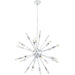Center your focus with a blaze of light designed to illuminate spacious rooms and event areas. Whether you create a festive atmosphere with colorful or classic white bulbs, Gamut brightens every corner in this contemporary chandelier brimming with endless possibilities. The chrome-plated steel base lends additional shine and sparkle to this eye-catching ceiling fixture. Cord adjusts from 23.5” to 31.5”.
