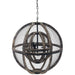 A statement piece with vintage modern appeal, the Gravitate Rustic Oak Wood Globe Pendant Light Chandelier creates layers of depth in your space with three lights encased in curved strips of oak wood, a black lacquered metal light fixture, and brass accent iron metal buckles. Hanging from a 57.1" metal chain with flush wall mount, this wooden orb pendant light makes a striking addition to the rustic, farmhouse, cottage, or industrial style dining room, bedroom, entryway, and living room. This extra large globe pendant light requires three E12 25W light bulbs (not included).