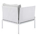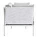 Engage life with Harmony. Enjoy casual conversation under the open sky with an all-weather waterproof furniture set that delivers an exceptional outdoor porch, patio, balcony or garden experience. An exceptional modern furniture set that exceeds expectations, Harmony comes with long-lasting machine washable Sunbrella® fabric cushions, soft and durable polyester Textiline® panels, square powder coated aluminum bases, tempered glass top tables, and non-marking foot caps. A sectional that arranges according to the spontaneous needs of your guests, set your sights on open and inspired moments with the Harmony Outdoor Patio Collection. Set Includes: 1 Loveseat, 2 Armchairs, 1 Coffee Table, 1 Side Table