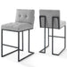 Maximize your dining room decor with Privy Bar Stool Set of 2. A glam deco bar stool, Privy features soft and durable fabric upholstery for a streamlined modern look. This stylish bar stool rests atop a sleek matte black stainless steel geometric base with a footrest that will elevate your bar and dining experience. No assembly required.