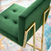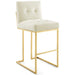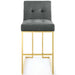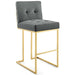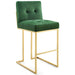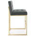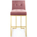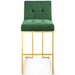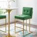 Maximize your dining room decor with Privy. A glam deco bar stool, Privy features soft and stain-resistant performance velvet upholstery for a streamlined modern look. This stylish bar stool rests atop a sleek gold stainless steel geometric base with a footrest that will elevate your dining and bar experience. No assembly required. Bar Stool Weight Capacity: 331 lbs.