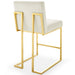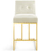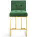 Maximize your dining room decor with Privy. A glam deco kitchen counter stool, Privy features soft and stain-resistant performance velvet upholstery for a streamlined modern look. This counter height stool rests atop a sleek gold stainless steel geometric base with a footrest that will elevate your dining experience. No assembly required. Counter Stool Weight Capacity: 331 lbs.