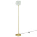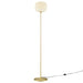 Introduce ingenuity and nuanced retro style into your home lighting design. The iconically shaped Reprise Glass Sphere Floor Lamp brings structure, texture, and a warm transparent glow in your bedroom, living room, entryway, or office. The opaque glass shade is softly textured with embossed horizontal lines creating a commanding living room floor lamp in mid-century modern, contemporary, or eclectic decors. This tall standing lamp combines elegance and functionality with rich satin brass accents and an open top allowing easy bulb access. Reprise is a dimmable standing lamp for the bedroom (dimmer switch not included), requiring 1 E26 60W max bulb or LED equivalent (not included). Easy access on/off floor switch on a black cable. Assembly required. Clean with a soft, damp cloth.