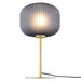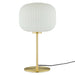 Introduce lighting ingenuity and nuanced retro style into your home decor. The iconic shape of the Reprise Glass Sphere Table Lamp brings structure, texture, and a warm transparent glow to your bedroom, living room, entryway, or office. The opaque glass shade is softly textured with embossed horizontal lines creating a commanding lamp for the living room in mid-century modern, contemporary, or eclectic settings. With rich satin brass accents, this side table lamp combines elegance and functionality. Reprise is a dimmable bedside lamp (dimmer switch not included), requiring 1 E26 60W max bulb or LED equivalent (not included). Conveniant access on/off switch with a black power cord. Assembly required. Clean with a soft, damp cloth.