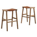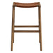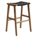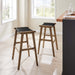 Spark engaging conversations with the Saoirse Bar Stool Set of Two. Artfully crafted with woven leather over a sturdy rubberwood frame, this set of two bar stools blends contemporary design with tactile elegance. Non-marking foot pads ensure both stability and floor protection, while the basket weave design, footrests, and side supports make for a personalized seating experience. These bar stools are perfect for the kitchen, breakfast nook, bar area, dining counter, or entertainment room. Assembly required. Weight Capacity: 331 lbs.