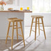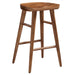 Explore the Saville Counter Stools Set of Two, where minimalist design meets contemporary style, perfect for your home and kitchen. These counter stools are expertly crafted from solid mango wood, offering durability and a natural aesthetic giving them rustic charm. The contoured saddle seats of these modern backless counter-height stools provide comfort and a sleek profile, enhancing any kitchen counter setting. The splayed and tapered legs feature functional stretchers, adding a sophisticated touch. Equipped with adjustable, non-marking foot glides, these natural wood counter stools protect your flooring while ensuring stability. Ideal for modern settings, this saddle stool set is a timeless enhancement to a kitchen island, bar area, or counter-height table. The Saville Counter Stools Set of Two comes fully assembled and ready to use. Weight Limit: 200 lbs.