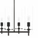 Cover your living space with ambient light with the Skylark 6-Light Chandelier. A modern update to the dining room, living room, entryway, office, bedroom, or bathroom, this hanging light features six bulbs encased in clear glass cylinder shades. Compatible with sloped ceilings, Skylark has a ceiling canopy with two swivel adaptors and features five piece, height-adjustable hanging rods to suit a range of ceiling heights. The Syklark Light Fixture requires six E26 bulbs 60W max or LED equivalent (not included). This pendant light is ETL listed for damp locations like the bathroom. Luminaires that are “Suitable for Damp Locations” are approved for areas that are regularly exposed to moisture and condensation. Professional installation required.