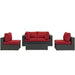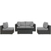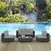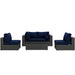 Outfit your patio with an imaginative Sojourn Outdoor Patio Furniture series. The Sojourn Patio Outdoor Collection offers a robust seating experience that easily rearranges according to usage. Outfitted with industry-leading Sunbrella® fabric cushions, synthetic rattan weave, UV protection, powder-coated aluminum frame, immensely enjoy your outdoor time with an outdoor conversation set that enhances patio, backyard, or poolside areas. This installment of the series is an Outdoor Patio Furniture Set.