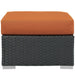 Outfit your patio with an imaginative Sojourn Outdoor Patio Furniture series. The Sojourn Outdoor Patio Ottoman offers a robust seating experience that easily rearranges according to usage. Outfitted with industry-leading Sunbrella® fabric cushions, synthetic rattan weave, UV protection, powder-coated aluminum frame, immensely enjoy your outdoor time with an outdoor wicker ottoman that enhances patio, backyard, or poolside areas. This installment of the series is an Outdoor Patio Ottoman.