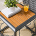 Gather family and friends for pleasant weather and good conversation with the Stance Outdoor Collection. Boasting a contemporary modern look, Stance features a sleek powder-coated aluminum frame offering a charming complement to the slatted synthetic wood tabletop—the perfect location to rest a plate of hors d'oeuvres, a cocktail, or cup of coffee. A versatile set designed for long-lasting durability, each piece in the Stance Collection can be mixed and matched and effortlessly arranged to fit the spontaneous needs of you and your guests.