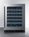33-bottle capacity with five gliding shelves that can each hold up to 6 bottles, and a floor shelf to hold up to 3 bottles in a horizontal configuration (NOTE: capacity may vary depending on specific bottle style)