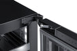Model ASDW2412 is a 24" wide 33-bottle single zone wine cellar sized under 18" deep. It comes in a 32" height to fit under lower ADA compliant counters, with adjustable legs and a sliding kickplate cover that also allows you to raise the overall height up to 34" to fit standard counter spaces. The front-breathing system allows built-in installation, while the fully finished black cabinet also allows freestanding use. Seamless stainless steel trim blends smoothly into the double pane tempered glass door for an elevated look, with a professional stainless steel handle included. This unit has a sealed rear and right angle cord for a better fit. The door is user-reversible and includes a front lock to protect your collection.