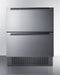Model SPR275OS2D is a 2-drawer all-refrigerator sized just under 27" wide and under 24" deep for an easy fit under the counter in any kitchen with limited depth. Stainless steel drawer construction ensures lasting durability and a stunning look to suit any setting, with a set of pro style handles included. The fully finished drawer fronts can also accept overlay panels for a custom look to blend into your own cabinetry. The front-breathing design allows built-in installation, while the fully finished black cabinet also enables freestanding use. The sealed back and right angle plug help to ensure an easy fit.