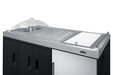 The stainless steel work surface offers plenty of room for mixing beverages or prepping your party. A recessed cutout features a removable cutlery tray that can be covered with our durable cutting board, letting you maximize useful counter space. The left side includes a sink compartment that can be connected to your garden hose to dispense cold water. We also include a removable clear dome that covers your sink, allowing you to create your own ice bucket system to keep items chilled and protected from pests. We supply a waste drain bottle that can easily be installed under the sink area and emptied as needed.