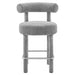 Enhance your dining space with the exquisite Toulouse Boucle Upholstered Counter Stool. Upholstered in beautifully textured boucle fabric, this counter stool exudes modern luxury and glam deco style. The curved bolster pillow backrest, circular seat, and dense foam padding provide unparalleled comfort and unmatched aesthetics. A polished metal stretcher wraps around the four tubular legs to provide function and chic allure to the stylish counter-height stool. With non-marking foot pads to protect your flooring, this boucle counter stool adds a touch of sophistication to the dining room or kitchen space. Easy assembly is required. Weight Limit: 330 lbs.