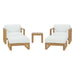 Refresh your outdoor décor with the Upland Teak Outdoor Collection. Boldly designed with eye-catching appeal, Upland is made of solid teak wood with all-weather white cushions and solidly build construction. The perfect choice for balconies, backyards, patios, gazebos, poolside or garden spaces, choose from matching armchair, loveseat, ottoman, side table, coffee table, and chaise lounge selections with this multi-purpose modern teak set. Known for its ability to withstand extreme weather conditions, teak is the wood selection of choice for long-lasting outdoor furnishings. Assembly required.