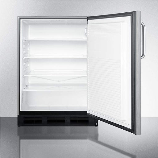 View full detailsSummit 24" Wide Outdoor All-Refrigerator, ADA Compliant / 5.5 cu.ft. Capacity, Stainless Steel Exterior, Automatic Defrost, Ground Fault Circuit Interrupter, Professional Towel Bar Handle, Adjustable Glass Shelves / SPR7BOSSTADA