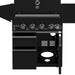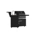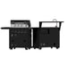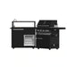 The sleek black sintered stone countertops add a touch of elegance, providing a durable, scratch-resistant surface that complements any outdoor setting. Mostly assembled for quick setup, it includes halogen lights, a rotisserie kit, and a pull-out waste bin. Propane-ready and easily convertible to natural gas, this unit is equipped with a waterproof cover and red control knob lights.