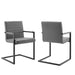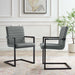 Bring contemporary intrigue and retro modern style to your dining space with the Savoy Vegan Leather Dining Chairs - Set of 2. Vegan leather upholstery makes this armchair perfect for the dining room or living space, while horizontal channel tufting brings mid-century detail. This accent chair features a sled base crafted with square tubular powder-coated metal, non-marking foot caps, and padded armrests. Dense foam padding offers a supportive seat while dining or relaxing. Chair Weight Capacity: 300 lbs.