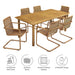 Abacus 7-Piece Rectangular Outdoor Patio Aluminum Dining Table Set with Rattan Armchairs