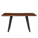 Dine, converse, relax, and entertain all while seated around the Viggo Rectangular Dining Table. Featuring a live edge tabletop crafted with solid acacia wood making each piece unique, this dining table is brimming with natural beauty and modern style. The dining table sits on splayed U-shaped legs crafted with powder-coated metal and abounding in striking angular detail. Designed for everyday dining or entertaining, this versatile table measures 60" long and effortlessly accommodates six dining chairs. The spacious tabletop can also serve as a functional office desk in a modern home or apartment. Includes non-marking foot pins to protect flooring.