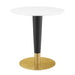 Gather family and friends for good food and conversation around the Zinque Dining Table. Bringing modern influence and mid-century inspiration to your dining space, this pedestal table reflects an organic shape. Perfect for entertaining or everyday dining, this dining table rests on a black and polished gold tapered base and features a 28" tabletop crafted with MDF and an easy-to-clean white coating. Non-marking ring to protect flooring. Assembly required.