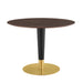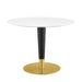 Gather family and friends for good food and conversation around the Zinque Dining Table. Bringing modern influence and mid-century inspiration to your dining space, this pedestal table reflects an organic shape. Perfect for entertaining or everyday dining, this dining table rests on a black and polished gold tapered base and features a 40" tabletop crafted with MDF and an easy-to-clean white coating. Non-marking ring to protect flooring. Assembly required.