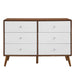 Harness the iconic energy of mid-century style in your master bedroom or guest room with the Transmit 6-Drawer Dresser. Featuring six full-extension white lacquer drawers with chrome metal pulls, Transmit is crafted with solid wood and particleboard, smooth walnut grain laminate, and four wood tapered legs. Keep visual space clean while keeping clothes, accessories, and bedroom essentials neat and organized in the spacious drawers. Assembly required.