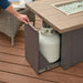 Sliding access door conceals standard 20 lb. propane tank in base