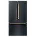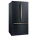 The Rivello 36 Inch French Door Refrigerator in Black with Antique Brass handles offers spacious, energy-efficient cooling with a bold, smudge-resistant finish. The adjustable fresh food shelves and transparent door bins make it easy to organize your groceries, while the internal water dispenser and filtered ice system deliver convenience without cluttering the exterior. A full-width freezer drawer with removable ice bin and fast freeze function keeps frozen foods accessible and fresh. This automatic defrost, frost-free fridge is Energy Star certified and built for freestanding installation, making it a practical choice for modern kitchens.