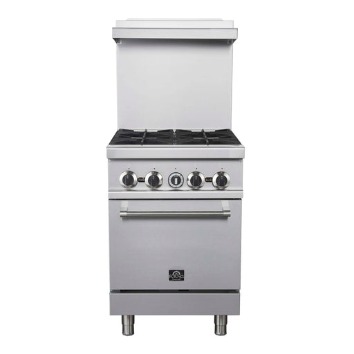 View full detailsForno Commerciale 24-Inch Gas Range with 4 Burners and 3.59 Cu. Ft. Oven in Stainless Steel (FCMGR0093-24)