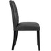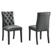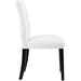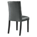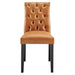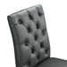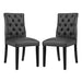 Bestow elegance with the Duchess Dining Chair. Chic and luxurious, Duchess features a stylish curvy form, richly tufted button back, dense foam padding, fine vinyl upholstery, and wood legs topped with non-marking foot caps. Resonate grace and charm with a dining chair perfect for the modern home.