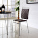 Take charge and speak up with a side dining chair with just the right amount of panache. Fuse features a compact back of durable PVC webbing, foam cushion and chrome plated tube base, to deliver an integrated design that doesn’t work too hard to be something its not. Perfect for dining rooms and kitchen or other meeting areas in need of a conversation-friendly seating arrangement.