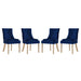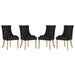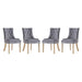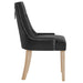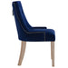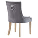 Update your dining room décor with the Pose Performance Velvet Dining Chair Set. Designed with a charming modern farmhouse aesthetic, Pose features elegant tufting, exquisite nailhead trim, padded seat and back with soft, stain-resistant performance velvet upholstery, and a décorative metal ring on the chair back for a delightful finishing touch. Supported by solid natural wood legs with flared back legs and non-marking foot caps, Pose is a distinctive dining chair perfect for the modern home.