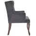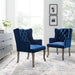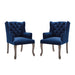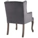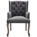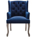 Elevate your living room, entryway, bedroom or home office decor with the Realm French Vintage Performance Velvet Dining Armchair. Elegantly designed with deep-button tufting, weathered wood cabriole legs with chiseled artisan detail, this wingback chair makes a chic statement with timeless detail and modern farmhouse intrigue. Finely upholstered in stain-resistant performance velvet with dense foam padding, charming French piping, and a sinuous spring support system for exceptional comfort, Realm creates a cozy spot to sit back and relax. Realm includes plastic foot caps. Armchair Weight Capacity: 300 lbs.