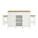 The Garland 3-Piece Kitchen Island Set seamlessly combines functionality with a timeless modern aesthetic, making it a must-have for any contemporary kitchen. This rustic kitchen island with a pull out table and built-in storage is durably crafted from particleboard, MDF, and paper laminate. This versatile kitchen island features a butcher block-inspired countertop with a rich wood grain finish, perfect for modern farmhouse kitchen island settings. Its thoughtful design offers ample kitchen storage, with two concealed compartments and an open area ideal for displaying items or storing everyday ingredients. The adjustable cabinet shelves on this free-standing island accommodate cookware, kitchen essentials, tableware, cookbooks, and more, keeping everything you need conveniently within reach. Each stool has a square seat and stretcher footrests, and its backless design is designed to complement this narrow kitchen island with comfortable seating. This kitchen island boasts a distinctive pull-out table on caster wheels and provides extra prep space and convenient seating with two stylish stools. When not in use, it can be conveniently tucked away. Serving as a butcher block island, a prep counter, or extra counter space in a kitchenette, the Garland Kitchen Island is a versatile and stylish addition to your culinary space. Assembly required. Includes non-marking foot pads to protect flooring. Island Weight Capacity: 200 lbs.; Stool Weight Capacity: 500 lbs.