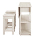 Discover the charm and functionality of the Meadowbrook 3-Piece Small Kitchen Island Set. This island table is crafted from durable particleboard, MDF, and paper laminate. This free-standing kitchen island cart features two cutlery drawers and open shelving, perfect for storing kitchen essentials and displaying decor. The innovative drop leaf design of this freestanding kitchen island not only increases your prep area but also converts it into a dining space. It comes with two matching stools, featuring square seats and footrests, which turn the island into a bar stool table for enjoying drinks post-meal. Complete with non-marking pads to protect your floors, this 3-piece island set is ideal for meal prep and casual dining, making it a stylish addition to any kitchen. Assembly required. Set Includes: 1 Kitchen Island, 2 Stools. Island Weight Capacity: 205 lbs; Stool Weight Capacity: 500 lbs.