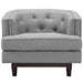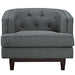 Sale the tide of elegance with Coast. Buoyed with exquisite deep button tufting and fine trim, Coast comes upholstered in polyester with a walnut stained wood leg base with non-marking foot glides. Solidly made with exceptional support, Coast features dense foam cushioning, removable seat covers for easy cleaning and generous seating space. Combining mid-century style with ageless nobility, the Coast armchair is perfect for modern and eclectic living rooms, lounge spaces, and reception areas.