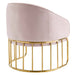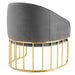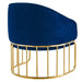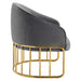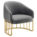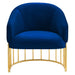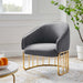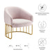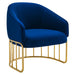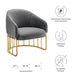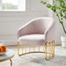Introduce spirited retro-glam style into your mid-century modern or eclectic living room with the Legacy Performance Velvet Armchair. The welcoming arc of this velvet armchair's backrest is nestled in a curved gold-plated stainless steel base with vertical stretchers, creating an alluring silhouette in your entryway, dining room, or lounge space. This retro-glam accent chair makes a cozy reading corner in your bedroom. Dense foam padding and a webbed support system unite for essential comfort and durability, making the Legacy Velvet Armchair a long-lasting piece in your home. This mid-century armchair is outfitted with stain-resistant performance velvet upholstery and non-marking foot glides to protect your floors. Weight Capacity: 331 lbs
