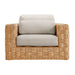Create a serene outdoor retreat with the Thames Patio Armchair. Constructed with a sturdy powder-coated aluminum frame and enveloped in premium synthetic woven rattan that boasts a textured, basket-like weave, this wicker armchair brings earthy tones to your outdoor decor. Fitted with upholstered fabric cushions that have rolled edges and a lumbar throw pillow for added comfort, the Thames Patio Wicker Single Sofa is ideal for relaxation. Its deep seat is perfect for cozy evenings or lazy weekend mornings. Non-marking foot caps protect your outdoor surfaces, allowing you to move and position the rattan sofa chair with ease. The entire Thames Outdoor Patio Collection is UV-resistant and water-repellent, offering comfort that lasts season after season, making it an ideal addition for your patio, deck, or garden. With no assembly required and easy maintenance, this outdoor backyard chair invites you to unwind in style. Weight Capacity: 400 lbs.