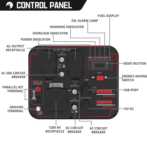 PowerSmart3600 Starting Watts / 3200 Running Watts — Power essentials at home or outdoors Up to 4.5 Hours Runtime at Half Load — Reliable backup during outa...